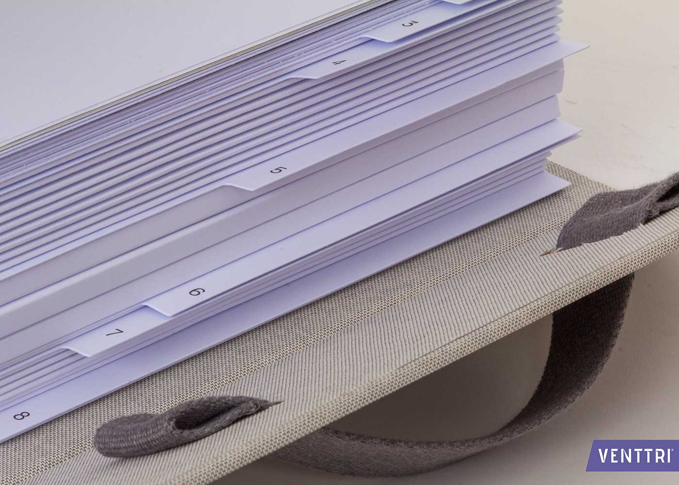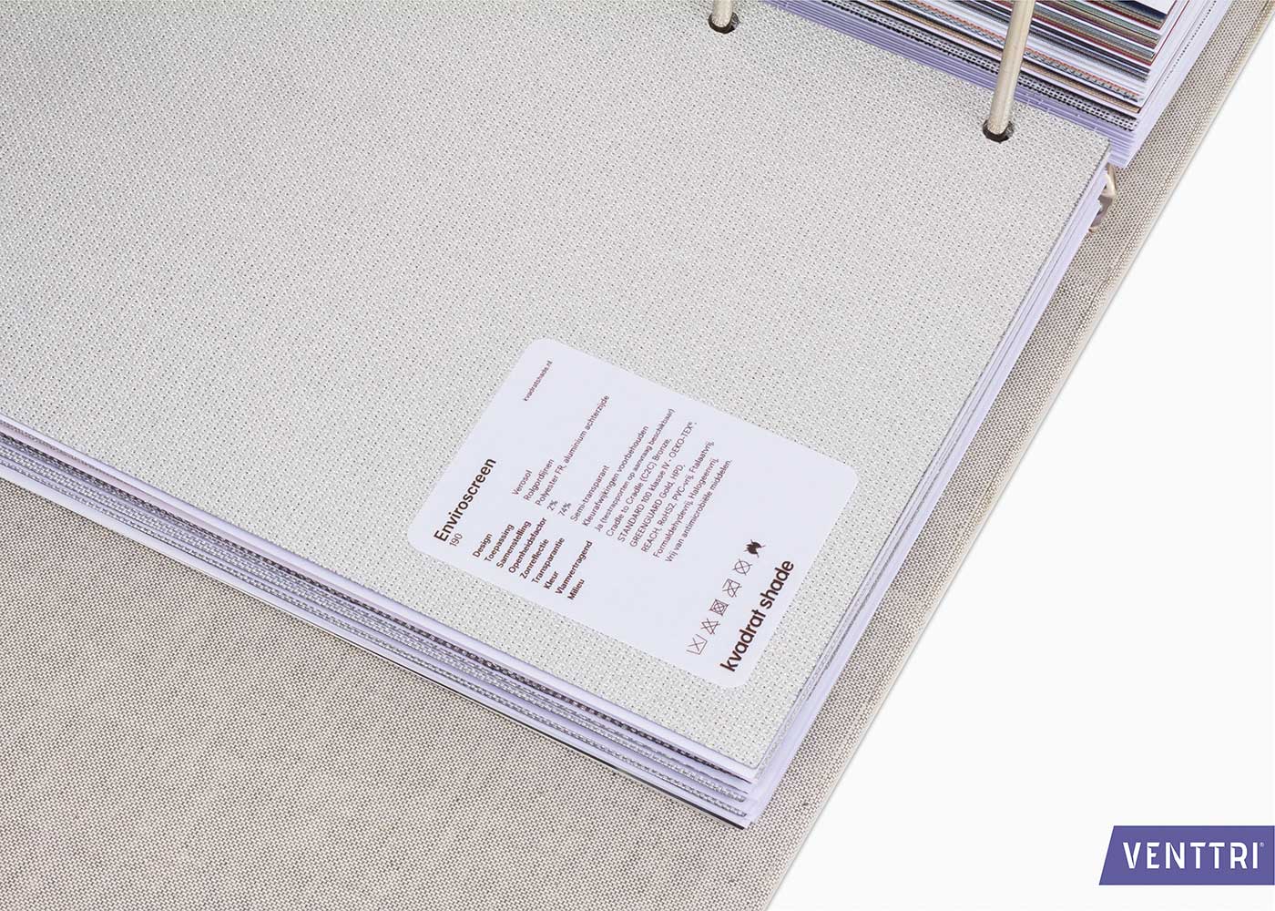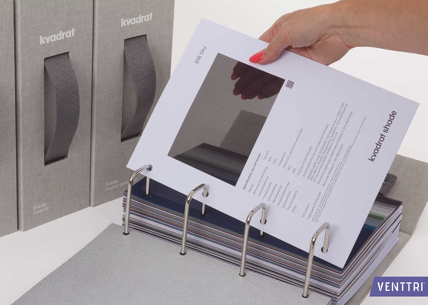 Binnenin bevatten de boeken verschillende soorten materialenkaarten met de kleuren van de profielen van de zonwering. Enkele zijn voorzien van speciaal aangebrachte raampjes, waarmee de transparantie van de stoffen direct kan worden bekeken. Daarnaast zijn er trapsgewijs geplaatste stoffen opgenomen. Zo ontstaat een presentatie die niet alleen overzichtelijk is, maar ook interactief en gebruiksvriendelijk.