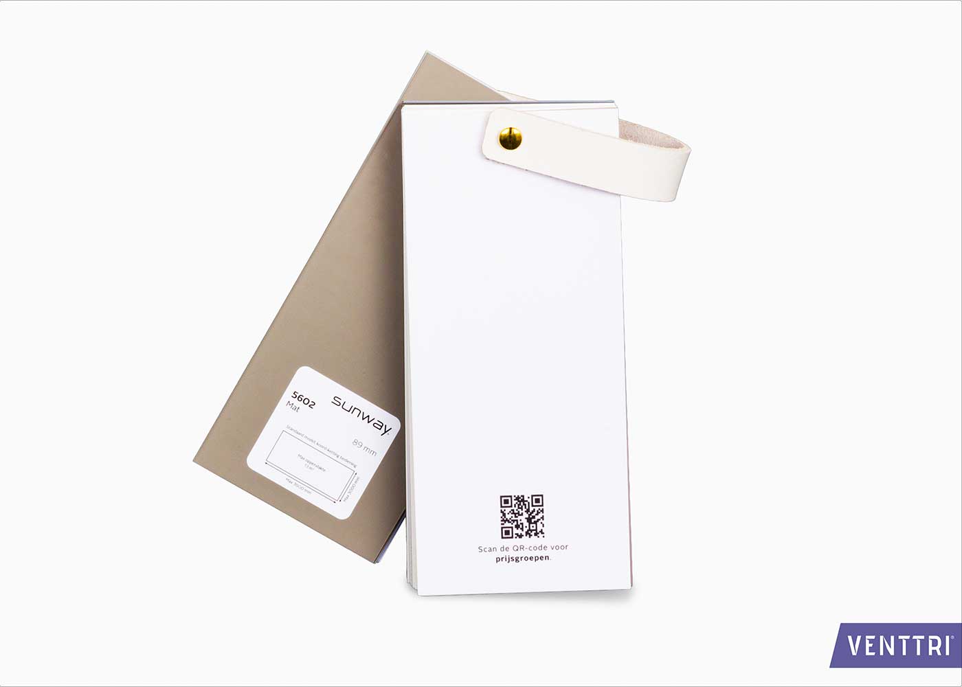 Voor dit project ontwikkelden we een functionele en stijlvolle stalenhanger voor jaloeziestalen. De jaloezieën zijn nauwkeurig op maat gesneden en gebundeld tot een waaier, compleet met labelsticker, voor- en achterblad. Beide bladen zijn bedrukt met het logo en de productgroep, waardoor de stalenhanger zowel informatief als representatief is.